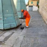 Il personale di Avr, in collaborazione con la Polizia Municipale, ha effettuato nei giorni scorsi un intervento massiccio di pulizia e di rimozione di materiale abbandonato presso le bancarelle a forma di piramide in via Cammeo, lungo le mura. Sono state rimosse numerose tavole di legno, pedane, cassette di plastica, sgabelli e altro materiale utilizzato dai gestori di alcune bancarelle di via Cammeo come supporti per l’apertura delle strutture, materiale che poi veniva lasciato quotidianamente nell’area a ridosso delle mura, lungo il percorso di ingresso alla zona monumentale, creando forte degrado. L’area dietro le bancarelle, piena di sporcizia come bottiglie di vetro e plastica, cartacce e rifiuti vari abbandonati, è stata ripulita, con la collaborazione degli stessi gestori.