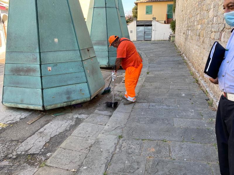 L’intervento è stato realizzato su segnalazione dell’assessore alla cura della qualità urbana Raffaele Latrofa: “Dopo aver più volte richiamato i gestori delle bancarelle a forma di piramide di via Cammeo a mantenere l’area dove lavorano pulita e decorosa, nell’interesse comune di accogliere i turisti in ingresso a piazza dei Miracoli in maniera dignitosa, senza mai ricevere alcun riscontro da parte degli stessi, abbiamo fatto intervenire la Polizia Municipale insieme ad Avr per effettuare una pulizia dell’area e rimuovere il materiale che crea degrado. I gestori delle bancarelle sono stati invitati a collaborare per ripulire il marciapiede dai rifiuti e contribuire loro stessi a mantenerlo in ordine. Ho chiesto alla Polizia Municipale non soltanto di intervenire, richiamando i gestori ad un comportamento rispettoso delle regole e del decoro urbano, ma di proseguire a monitorare la zona, in modo scoraggiare azioni e abitudini che creano degrado.”