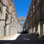 Segue l’Abbazia di San Galgano a Chiusdino (SI), tra i monumenti iconici del centro Italia e uno degli edifici gotico-cistercensi più importanti del nostro Paese. Si lega al nome del cavaliere di Chiusdino Galgano Guidotti, che intorno al 1180 si ritirò a vita eremitica nella campagna di Montesiepi, dopo essere diventato monaco cistercense. Dopo la sua canonizzazione nel 1185, i cistercensi di Casamari edificarono la grandiosa abbazia in suo nome – sorta tra 1224 e 1288 e ispirata a modelli francesi - che ben presto soppiantò i monasteri benedettini dei dintorni, affermandosi come una delle più potenti in Toscana. La sua decadenza cominciò nel XV secolo e a fine Settecento crollarono il tetto, le volte e il campanile. A fianco dell’abbazia si conservano ampie porzioni del monastero. A fine 2017, in virtù della legge sul federalismo demaniale culturale, il bene è stato trasferito dallo Stato al Comune e sono in corso interventi di recupero per poter aprire al pubblico l’ala sinistra del monastero, che conserva le celle e una chiesetta interna. L’Abbazia di San Galgano è il “luogo del cuore” dell’attore Massimo Wertmüller.