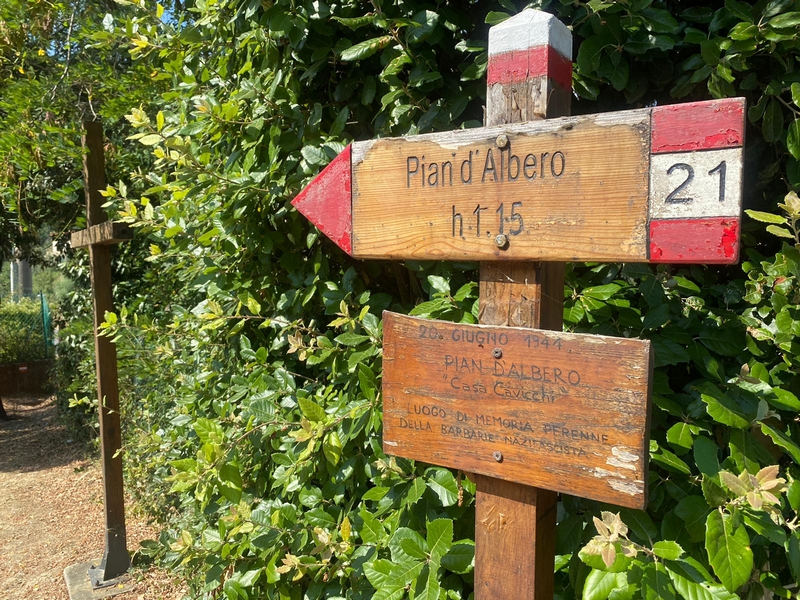 Quest’ultimo, in particolare, è stato oggetto di recenti attività di ripulitura, che si sono svolte tra l’inverno e la primavera scorsi (grazie anche all’impegno di Gaib Figline, ProCiv Incisa e Vab Rignano) e che sono finalizzate alla valorizzazione di un luogo simbolo per la storia del territorio. È lì infatti che nei primi mesi del ’44 si costituì una formazione di oltre 600 partigiani, la cosiddetta Brigata Sinigaglia (dal nome di uno dei primi caduti fiorentini per mano nazifascista), impegnata nella Resistenza sul territorio e oggetto di numerosi studi, tra cui il volume “Sulla strada per Firenze. La Brigata Sinigaglia e la strage di Pian d'Albero, 20 giugno 1944” di Matteo Barucci, finanziato dal Comune di Figline e Incisa Valdarno ed edito nel 2017. Ed è sempre lì che si trova il casolare di Pian d’Albero, abitato dalla famiglia Cavicchi e rifugio di molti sfollati e partigiani, dove il 20 giugno 1944 si consumò una strage per mano nazifascista. A morire, in quell’occasione, furono oltre 30 partigiani, insieme a tre componenti della famiglia Cavicchi: il nonno Giuseppe, il padre Norberto e il piccolo Aronne, di appena 15 anni. Sui colli sopra Pian d’Albero, inoltre, fra luglio e agosto 1944 il battaglione scozzese dei Black Watch riuscì a sfondare la linea difensiva tedesca Mädchen, permettendo la marcia verso Firenze degli Alleati.