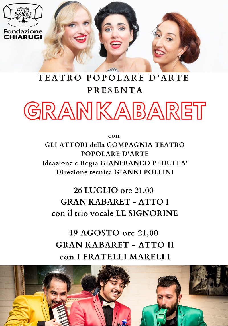 Al via dunque fra pochi giorni GRAN KABARET, a cura della Compagnia Teatro popolare d’arte di Lastra a Signa con due date in programma: