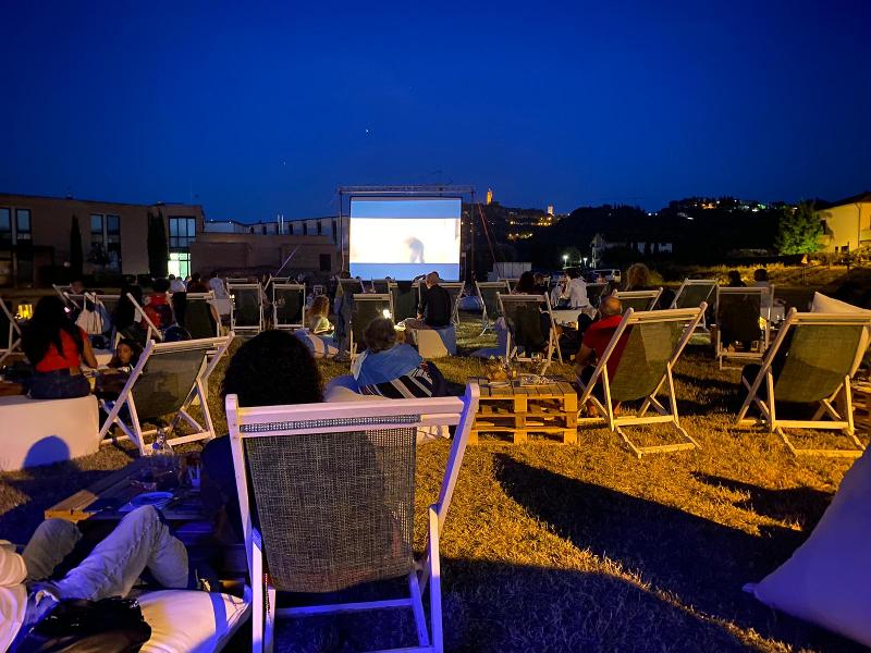 Il film in cartellone era Il Professor Cenerentolo di Leonardo Pieraccioni, ma l'AperiCinema si è trasformato ormai un momento di relax e di ritrovo, con la possibilità di godersi un aperitivo in compagnia e di passare una serata in tranquillità, con le stelle a risplendere e la Rocca sullo sfondo.