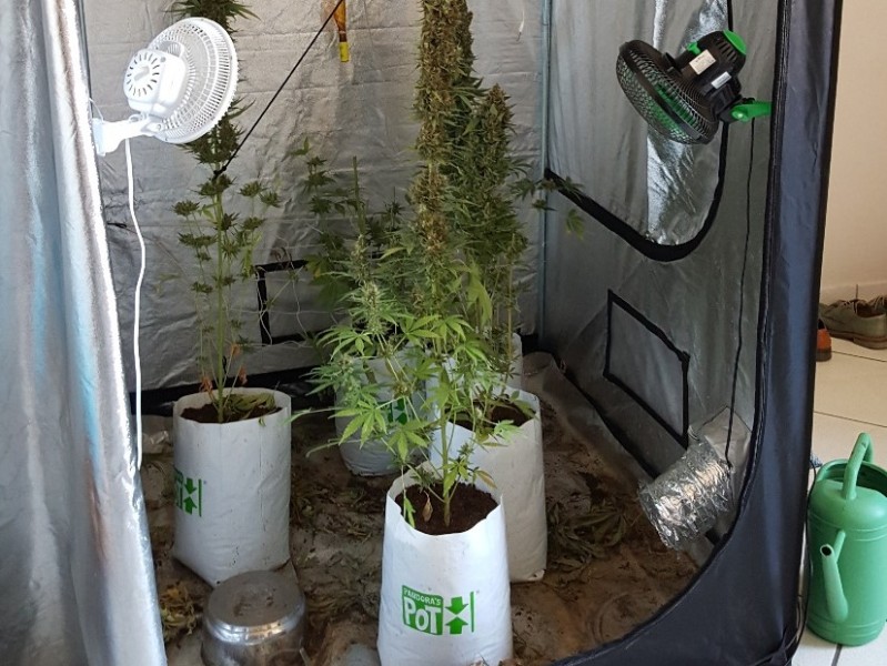 In una delle stanze dell'appartamento dell'uomo era presente un box con struttura in metallo, rivestito di tessuto non traspirante, attrezzato ad hoc con ventilatori e lampada alogena, ospitante quattro piante di cannabis. Ritrovate inoltre dai carabinieri anche una bilancia di precisione, la macchina per il sottovuoto e vari sacchetti di plastica trasparente.