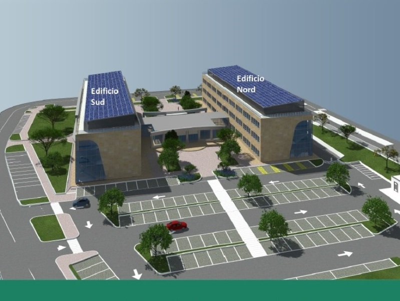 La struttura nella sua interezza prevede la realizzazione di un edificio a forma di H con due costruzioni simmetriche unite da un corpo di collegamento che contiene gli ingressi ovest ed est al distretto e i collegamenti agli edifici.