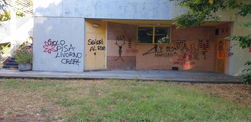 Nella zona della piscina comunale e degli impianti sportivi le telecamere ci sono, i filmati saranno visionati, i carabinieri stanno indagando, la nostra municipale gira in lungo e in largo il territorio e Geste è intervenuta immediatamente per pulire e nei prossimi giorni ci adopereremo per rimuovere anche le scritte. Ma il punto è che bisogna riflettere sull'origine di questi atti vandalici. Non mi riferisco solamente a quelli della scorsa notte a San Giuliano Terme, ma anche a quelli sull'acquedotto mediceo, sulle panchine, sui cestini, sui cartelli stradali e sui giochi pubblici. E anche alle urla e agli schiamazzi che ci segnalano continuamente nelle piazze di diverse frazioni.