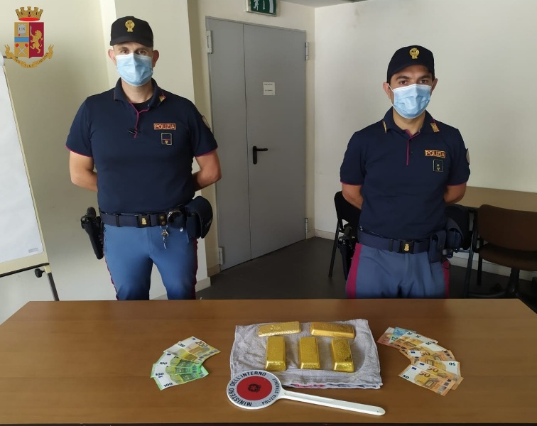 Dalla stessa sono saltati fuori 5 lingotti d’oro senza alcuna dicitura o marchiatura, dei quali i due uomini non sono stati in grado di giustificarne il possesso, mentre il 51enne è stato trovato in possesso del migliaio di euro in contanti.