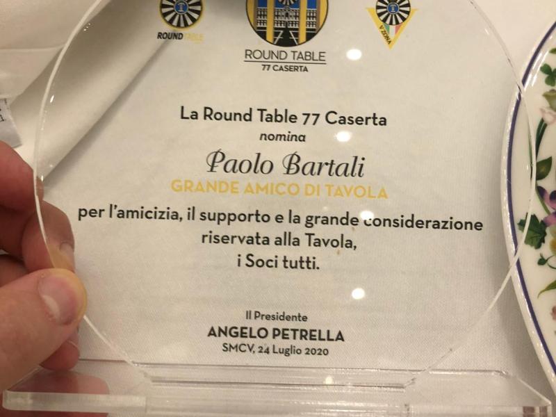 Paolo Bartali ha commentato: "È un grande onore ricevere questo riconoscimento ed un grande motivo d’orgoglio far parte anche della Round Table 77 Caserta".