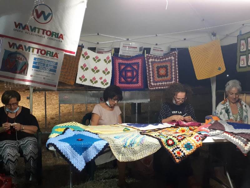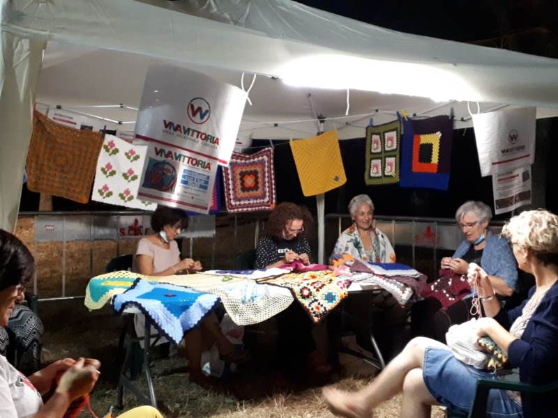 Viva Vittoria parte da lontano, più precisamente da Brescia, dove alcuni anni fa un gruppo di donne ha realizzato un gran numero di quadratini di lana all'uncinetto ricoprendo la Piazza della Vittoria bresciana con queste opere. I quadratini sono stati poi venduti e il ricavato donato ad una casa di accoglienza per donne e bambini maltrattati.