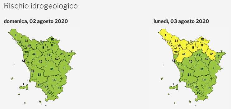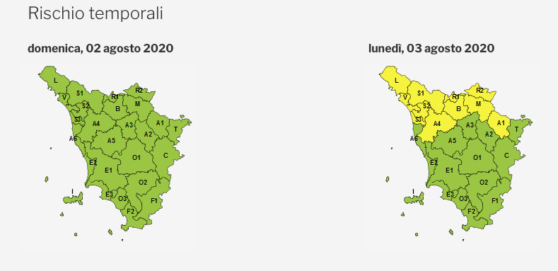 Tempo in peggioramento, soprattutto sulle zone settentrionali della Toscana, per l'avvicinarsi di una perturbazione atlantica. Per questo la Sala operativa della protezione civile regionale ha emesso un codice giallo per pioggia e temporali valido dalle 4 alle 20 di domani, lunedì 3 agosto.