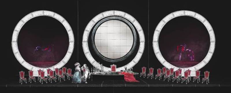 Tre grandi cornici nella forma perfetta di cerchi dominano la scena  per contenere – come dichiara il regista Stefano Monti-  l’imperfezione di un mondo che oggi si manifesta attraverso l’attuale pandemia,  mentre la luce, quella  accecante diretta al pubblico può venire in soccorso per occultare la necessità di distanziamento in momenti di corpo a corpo, come l'accoltellamento di Scarpia.