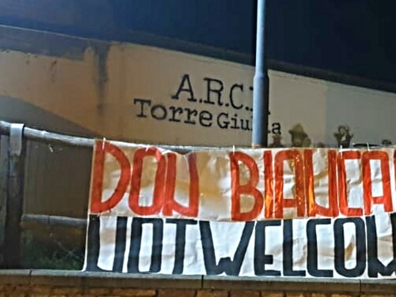 Davanti alla sede del circolo, un gruppo di estrema destra nella notte scorsa, ha affisso uno striscione contro il parroco che accoglie i migranti. Sullo striscione c'è scritto 'Don Biancalani Not Welcome' in riferimento all'impegno che Don Biancalani profonde con i migranti.