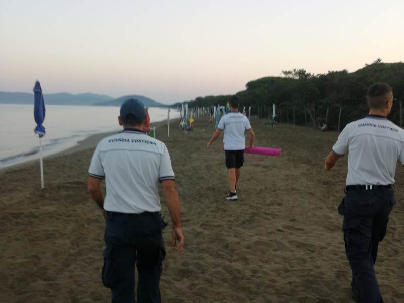 Analogo intervento, con numeri ancora più elevati è stato compiuto dal personale della Guardia Costiera di Porto Santo Stefano, in collaborazione con la Polizia Municipale del Comune di Orbetello, sul tratto di litorale antistante la via Aurelia e località “le saline”. Anche in questo caso, in due distinte operazioni si è proceduto al controllo di circa 4 km di litorale e sono state oltre 700 le attrezzature da spiaggia rinvenute e sequestrate poiché lasciate incustodite ed al fine di occupare tratti di arenile libero.