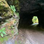 Il percorso è un giro tondo che ritorna al punto di partenza. Si parte quindi dal tunnel di pietra per ritornarci incontrando sempre la teleferica, ancora presente, che veniva utilizzata per portare a valle il materiale ferroso. Prima camminerete immersi nella natura, un po’ in salita un po’ in discesa, fino ad incontrare le prime cascate e alcune grotte. È consigliato sostarvi davanti poiché sembra di stare sotto il fresco di un condizionatore, come quelli da casa, ma tutto naturale! Iniziano ad alternarsi giochi d’acqua e presenza di minerali, moltissimi tra cui il Quarzo, la Dolomite e l’Argonite, fatta a ciuffi di cristalli che rivestono spesso l’interno di queste gallerie.