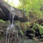 Oltrepassate le grotte, cascate e fonti d’acqua si faranno sempre più presenti fino all’arrivo nella zona popolata dalle strutture, dove venivano prodotti micce e polvere da sparo. Oggi, nel silenzio più totale del luogo dove l’unico rumore che si può sentire è quello delle cicale alternato allo scorrere dell’acqua, lo scenario che si presenta davanti al visitatore è davvero coinvolgente. Sembra un villaggio popolato da creature fantastiche: scalini che scendono e salgono in mezzo alle felci, finestre e porte che ospitano spesso ancora oggi gli strumenti di lavorazione. Tra le strutture, tutte da esplorare senza entrarvi per ragioni di sicurezza, si trova una incredibile cascata. Da qui sembra piovere fortissimo, grosse gocce d’acqua ghiaccia cadono sulle spalle e sulla testa (se vorrete entrarci) facendo sicuramente dimenticare la quantità di gradi presente in estate.