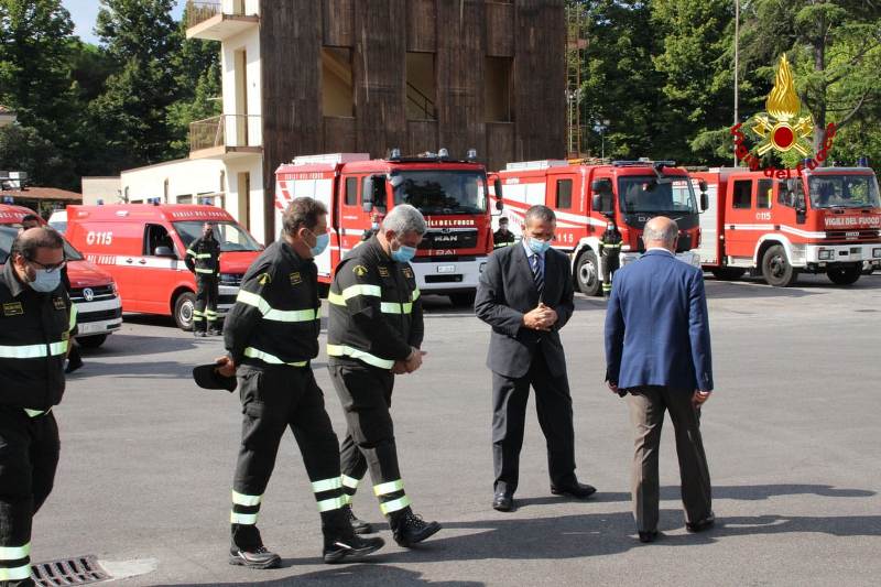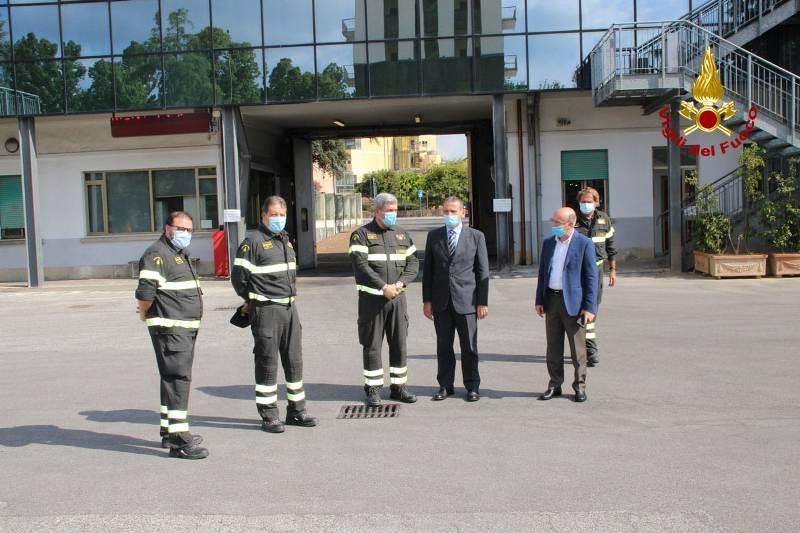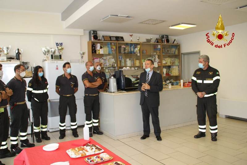 Da questi ultimi, in occasione del Ferragosto, il Prefetto ha voluto portare il sostegno e il ringraziamento personale delle istituzioni locali, dell'intera cittadinanza e del Comando per il continuo e incessante lavoro di soccorso alla popolazione e per l'impiego e la collaborazione con la Prefettura.
