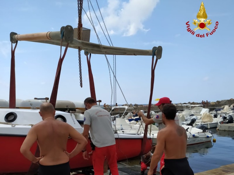 La barca a vela è stata recuperata e trainata al porticciolo di Antignano, dove è stata portata a terra.