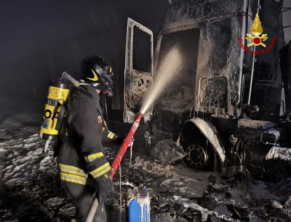 I vigili del fuoco di Arezzo e di Sansepolcro sono intervenuti ieri sera (lunedì 17 agosto) sulla SCG Orte-Ravenna (E45), all'inizio della galleria Madonnuccia, per un incendio che ha coinvolto un autoarticolato che trasportava frutta. Non si segnalano persone coinvolte. Sul posto anche la Polizia Stradale.