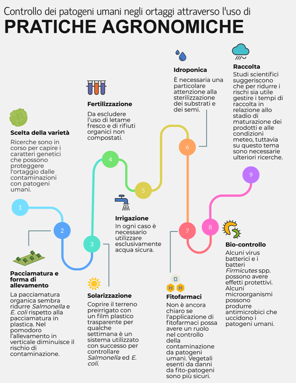 Lo studio dell’Università di Firenze, firmato da Massimiliano Marvasi, Anna Lenzi e Ada Baldi, illustra le pratiche agronomiche che permettono di ridurre il rischio di infezione indicando nove azioni finalizzate alla sicurezza dei prodotti, utili anche per chi coltiva il proprio orto. Lo studio è stato pubblicato su Food Control, rivista dell’International Union of Food Science and Technology, l’organizzazione no-profit punto di riferimento del World Health Organization (WHO) e della Food and Agriculture Organization of the United Nations (FAO).