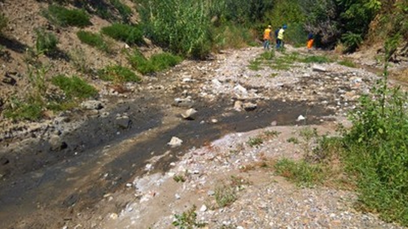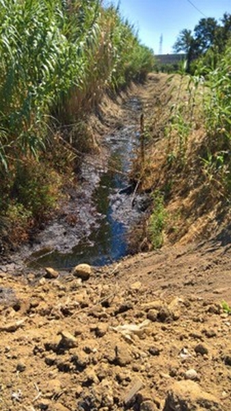 Si sta altresì intervenendo sul fosso degli Ortolani, al momento prosciugato e con previsione di asportare quanto interessato da contaminazione. La contaminazione del fosso a livello superficiale è stata accertata visivamente proseguendo per quanto possibile in direzione della Greve ed è ipotizzabile che arrivi fino all'immissione del fosso nella stessa. Sono evidenti le tracce di materiale nerastro ed umido, emanante un odore particolarmente sgradevole. Si tratta con evidenza di sostanze con caratteristiche oleose coerenti con il dilavamento dei locali dell’Azienda interessati dall’incendio.