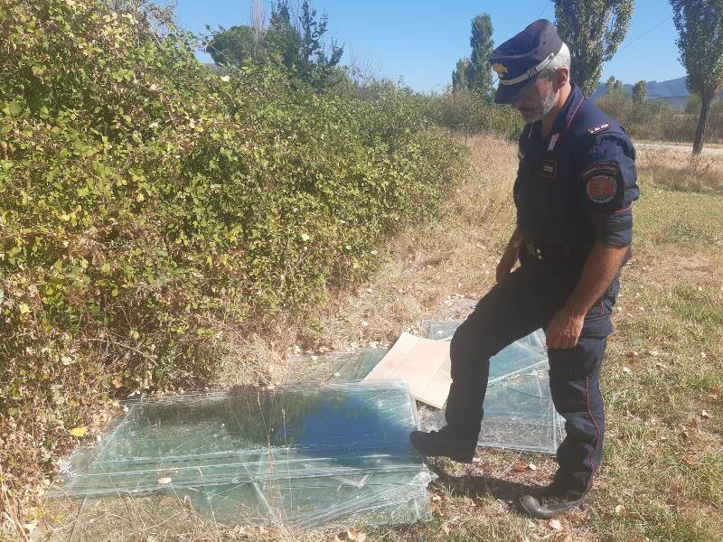 Pannelli di vetro abbandonati in aperta campagna, due denunciati