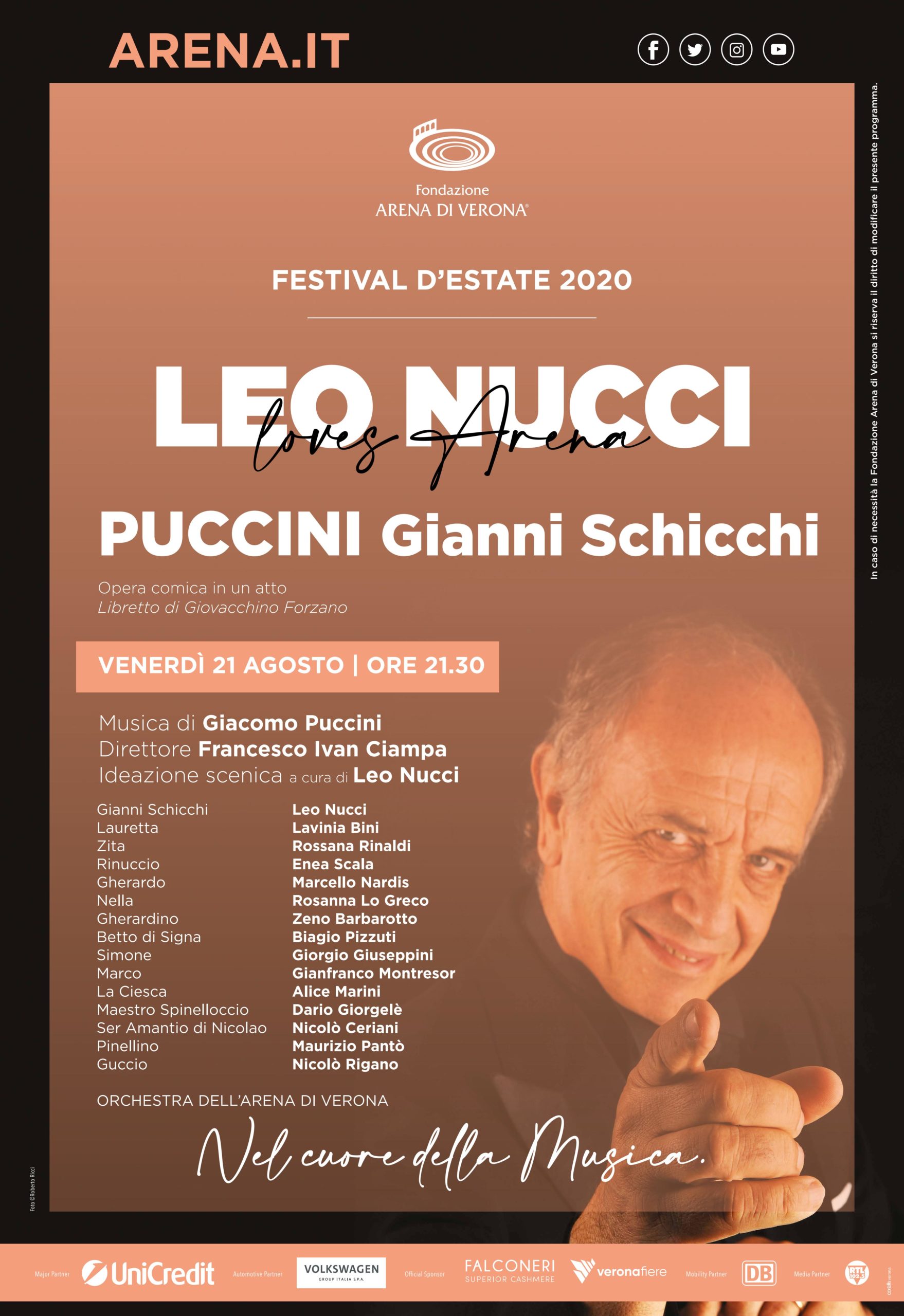 Venerdì 21 agosto, alle 21.30 all'Arena di Verona è andata in scena l'unica opera del 2020 in forma semiscenica Gianni Schicchi. Una scelta geniale portare in scena Gianni Schicchi, con i suoi 13 personaggi e la sua costruzione, a differenza di molte opere che prevedono contemporaneamente in scena un numero maggiore di personaggi, si è prestata alla perfezione alle nuove regole di distanziamento che i teatri devono rispettare per contenere la diffusione del coronavirus covid19.