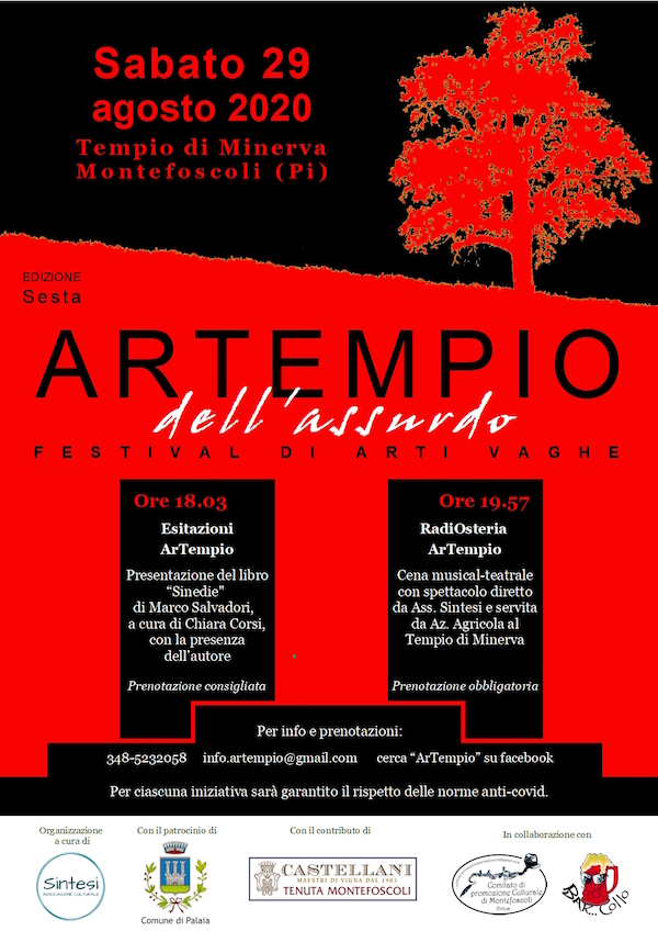 ArTempio è organizzato da Associazione Sintesi e realizzato grazie al contributo di Castellani – Tenuta Montefoscoli, con il patrocinio del Comune di Palaia e la collaborazione di Comitato di Promozione Culturale di Montefoscoli, Azienda Agricola al Tempio di Minerva e BarCollo - Forcoli.