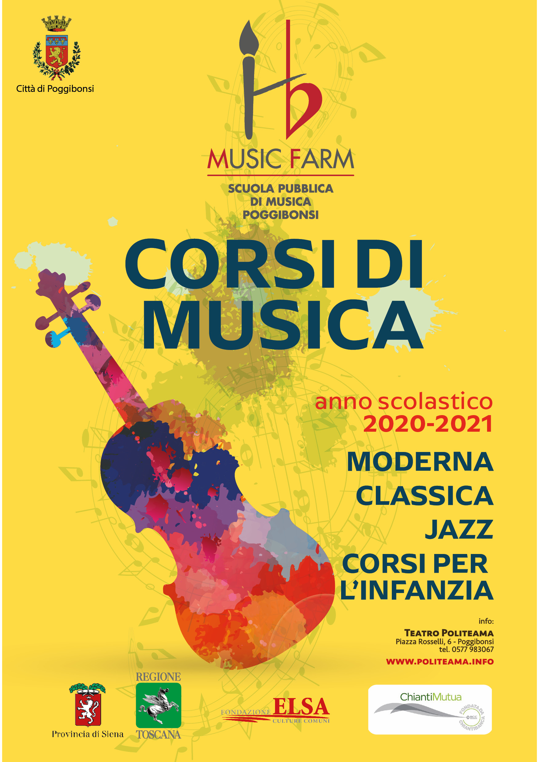 Al via martedì 1 settembre le iscrizioni per i corsi del nuovo anno accademico 20/21 della Scuola Pubblica di Musica di Poggibonsi, HB Music Farm. I corsi cominceranno a ottobre sia in presenza, presso la scuola di Via Carducci 1 a Poggibonsi, che, per chi vorrà, nella modalità a distanza che ha riscosso molto successo durante il lockdown.
