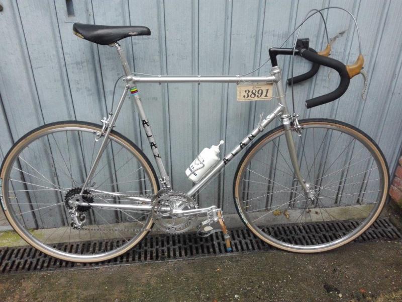 In allegato una mia foto all'EROICA e la foto della Bici che utilizzerò domenica, Telaio Alan del 1978 con gruppo Campagnolo Super Record e ovviamente come richiesto dal regolamento Bici Eroiche, pedali con gabbiette, leve cambio sul telaio e fili freni esterni, ho scelto questa bici perché è simile a quelle che ho usato quando correvo nelle categorie Giovanili".