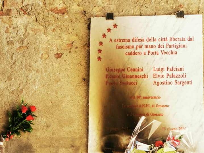 Ci sarebbe un colpevole per l'incendio della corona di alloro e il danneggiamento della lapide di marmo che l'ANPI aveva messo sotto l'arco di Porta Vecchia a Grosseto in memoria di sei partigiani uccisi dai nazifascisti durante la liberazione della città il 15 giugno del 1944. Si tratterebbe di un 53enne di Grosseto. Ad incastrare l'uomo i filmati di videosorveglianza. L'uomo, che è stato denunciato, avrebbe agito "senza alcuna appartenenza a fazioni di carattere politico, ideologico o religioso, tantomeno di carattere estremistico", ma per "rancori personali", così dicono gli investigatori.