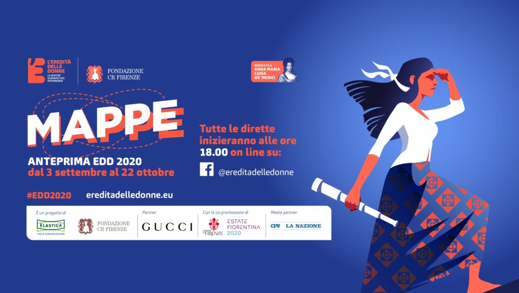 Si chiama ‘’Mappe’’ il viaggio alla scoperta delle novità editoriali di quest’anno, una stimolante anteprima alla terza edizione de L’Eredità delle Donne, diretto da Serena Dandini, che si terrà dal 23 al 25 ottobre a Firenze. Il festival è un progetto di Elastica e di Fondazione CR Firenze con il supporto di Gucci e il patrocinio del Comune di Firenze. Questa anteprima letteraria è una successione di 15 incontri live, in streaming, a partire da giovedi 3 settembre fino al 22 ottobre, tutti i martedì e i giovedì, alle ore 18, che sono trasmessi sulla pagina facebook “L'Eredità delle Donne” (@ereditadelledonne) e su quella de La Nazione, media partner di questa anteprima letteraria.