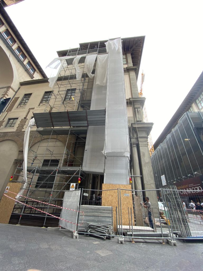 ‘Cantiere lampo’ alla Galleria degli Uffizi: in appena tre settimane di lavori, realizzati in pieno agosto, è stata restaurata e ristrutturata la gronda del tetto vasariano della testata del loggiato del museo affacciata su via della Ninna, che, dopo alcuni controlli, era risultata gravemente deteriorata. Il team di specialisti ha effettuato l’intervento con estrema rapidità, rimettendo a nuovo la parte danneggiata della facciata: i lavori si sono svolti su un ponteggio che ha consentito di operare in sicurezza all’altezza di 30 metri, lasciando accessibile per tutta la loro durata la sottostante rampa di accesso alla Galleria. “Si è trattato di un lavoro complesso e delicato, perfettamente portato a termine in un tempo davvero ristretto: praticamente è stato un ‘restauro lampo’ ”, ha commentato il direttore degli Uffizi Eike Schmidt.