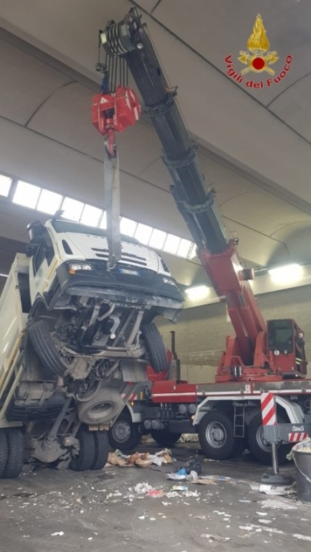 Singolare intervento dei vigili del fuoco questa mattina, poco dopo le 11.00 in via Chemitz nel comune di Prato, per un camion compattatore che, durante le operazioni di scarico del materiale, all’interno di una ditta specializzata, si è semi-ribaltato a causa del materiale rimasto incastrato nel vano posteriore che ha fatto da contrappeso, sollevando la parte anteriore del veicolo. I vigili del fuoco, con l’ausilio dell’autogru, hanno provveduto a riportare il veicolo in assetto orizzontale. Non si segnalano feriti.
