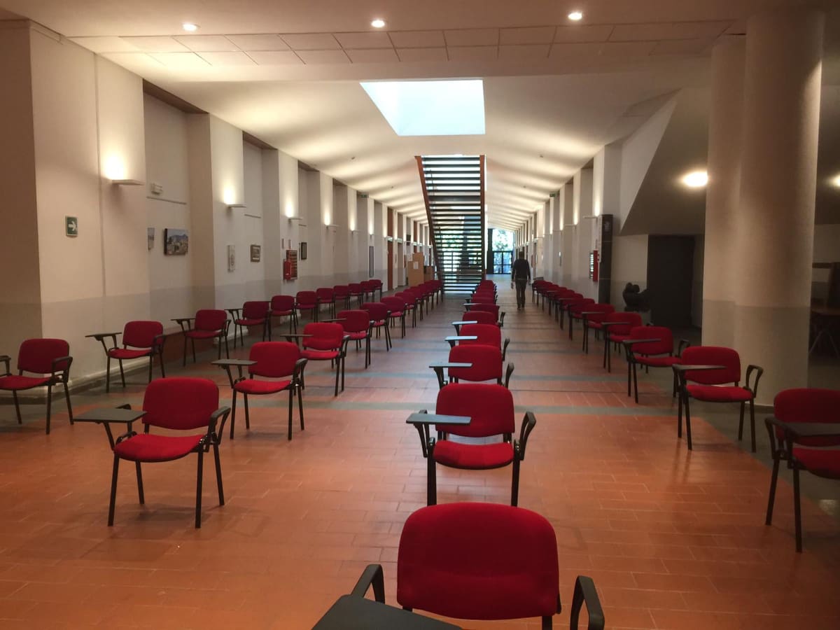 Di seguito alcune immagini degli spazi all'interno dei complessi San Niccolò e Mattioli dell'Università di Siena, allestiti per lo svolgimento in sicurezza della prova di ammissione al corso di laurea magistrale a ciclo unico in Medicina e Chirurgia, che si svolgerà giovedì 3 settembre, alle ore 12.