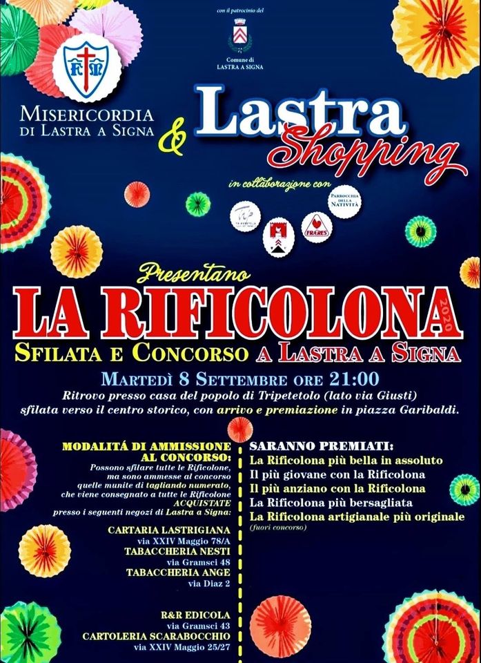 Martedì 8 settembre torna a Lastra a Signa la festa della Rificolona promossa dal Ccn Lastra Shopping e dalla Misericordia di Lastra a Signa con il patrocinio del Comune in collaborazione con la Casa del Popolo di Tripetetolo, Parrocchia della Natività, Gruppo storico dei Castelli di Lastra e Malmantile e Gruppo Fratres donatori del sangue.