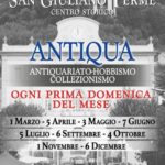 - Domenica 6 settembre appuntamento tutto il giorno con Antiqua, il mercato dell'antiquariato che in occasione del Settembre Sangiulianese si arricchisce con più varietà e più stand in largo Shelley. Antiqua è organizzato dalla proloco di San Giuliano Terme, che per questa edizione del Settembre proporrà al pubblico un numero maggiore di espositori.