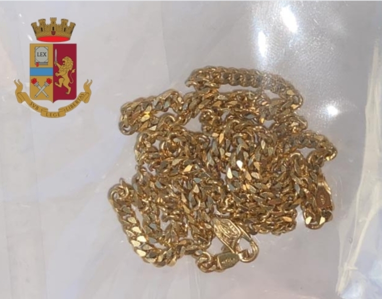 L’attività investigativa proseguiva e permetteva di recuperare anche la collana, che era stata venduta per la somma di 400 euro ad una gioielleria ubicata in città, con la complicità di un cittadino italiano pluripregiudicato di 62 anni, che veniva denunciato per ricettazione,