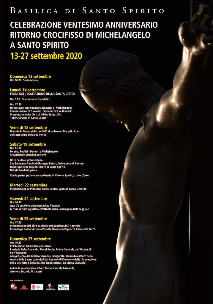 | Dal 13 al 27 settembre la Comunità Agostiniana di Santo Spirito ha organizzato numerose iniziative per festeggiare il ventesimo anniversario del ritorno del Crocifisso di Michelangelo in Santo Spirito. |