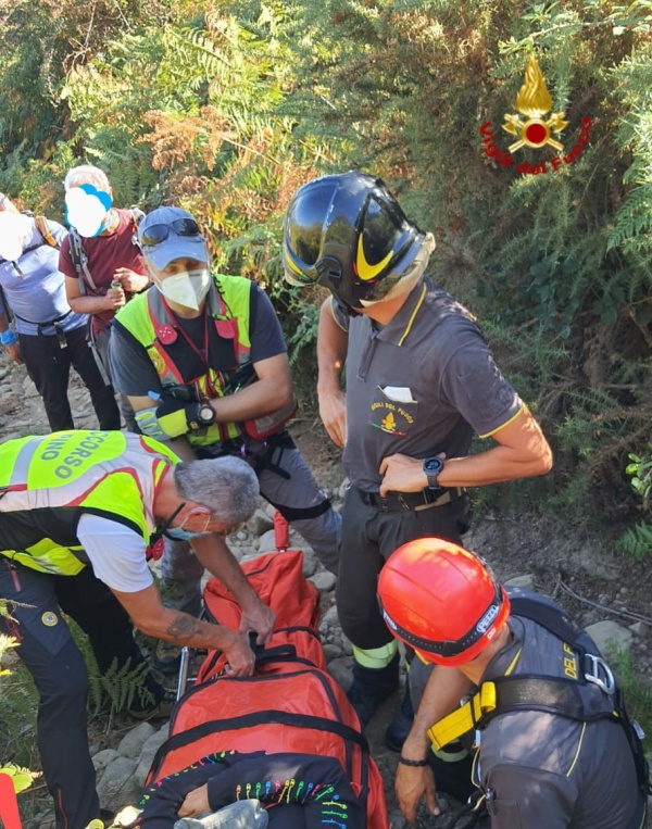 Dopo averla immobilizzata nella barella, la persona è stata portata presso il luogo dove la stava aspettando l'ambulanza, ed è stata consegnata ai sanitari del 118.