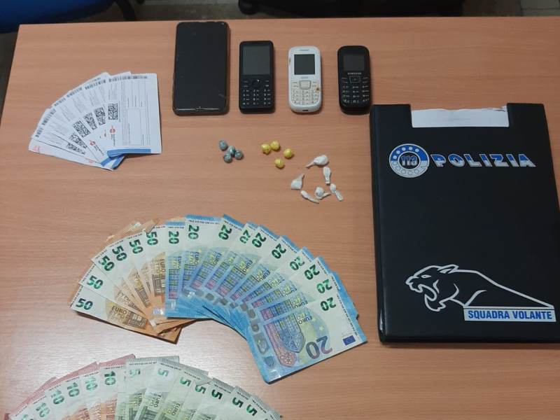 Eseguita una perquisizione personale, sono state trovate e sequestrata al giovane diverse banconote di vario taglio per un ammontare di oltre  640 euro, quattro telefoni cellulari e alcuni ticket restaurant intestati ad un'altra persona. Tutti gli oggetti  sono stati ritenuti riconducibili all’attività di spaccio di stupefacenti.