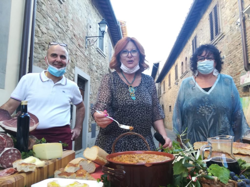 E non poteva mancare la terza anima, quella enogastronomica, rappresentata dal tavolo delle produzioni tipiche locali. Al fianco del macellaio Emiliano Parti, dell’omonima macelleria di San Donato in Poggio, hanno sfilato davanti alle telecamere del regista Giorgio Borgogno, olio, vino, pane, schiacciata, formaggio, salumi chiantigiani come il salame bastardo e il cavallo di battaglia del territorio, la ribollita, preparata ad hoc da una cuoca barberinese appassionata di sapori e tradizioni culinarie di epoca medievale e non solo, Anna Brancaccio. Il sindaco di Barberino Tavarnelle ha ringraziato gli autori e i produttori della trasmissione per l’opportunità offerta “a quella che consideriamo una delle nostre perle più preziose, un borgo ricco di storia che continua ad investire sulla vitalità dalla sua comunità”.