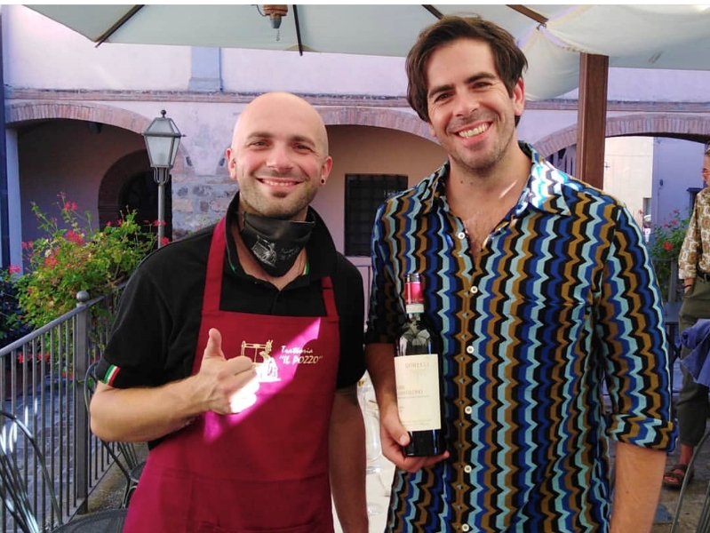 Eli Roth, regista, attore, sceneggiatore e produttore americano, ha scelto ieri la terra del Brunello come tappa delle sue vacanze estive. Per lui una visita alla meravigliosa Abbazia di Sant’Antimo, un tour nell’azienda vinicola Gorelli di Giuseppe Gorelli per scoprire come nasce un mito, il Brunello, un po’ di shopping nel centro storico di Montalcino (dove ha acquistato uno zaino nel negozio di abbigliamento, tessuti e articoli da regalo “Montalcino 564”) e una bistecca alla fiorentina accompagnata da un Rosso di Montalcino 2018 di Gorelli alla Trattoria Il Pozzo di Sant’Angelo in Colle. La presenza di Eli Roth, famoso nel genere horror e reso ancor più celebre dalla sua apparizione nel film “Bastardi senza gloria” di Quentin Tarantino (interpreta Donnie Donowitz, l’Orso Ebreo), non è passata di certo inosservata.