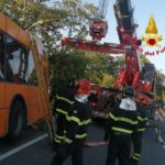 I Vigili del fuoco del comando di Arezzo, sono intervenuti a Castelnuovo di Subbiano in Viale Fermi a seguito di un incidente stradale, che ha visto coinvolto un autobus di linea urbana uscito fuori dalla sede stradale.