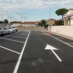 Terminate le operazioni di asfaltatura, nel parcheggio è stata ripristinata la segnaletica orizzontale per la regolamentazione della sosta, ridisegnando gli spazi: sono stati quindi realizzati 108 stalli per le auto e 21 stalli per i ciclomotori.