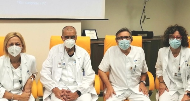 Gigliola Fabiani in memoria del fratello Franco, venuto a mancare due anni fa e curato dalla Pneumologia del presidio San Jacopo ha donato uno oscillometro al reparto diretto dal dottor Franco Vannucci.