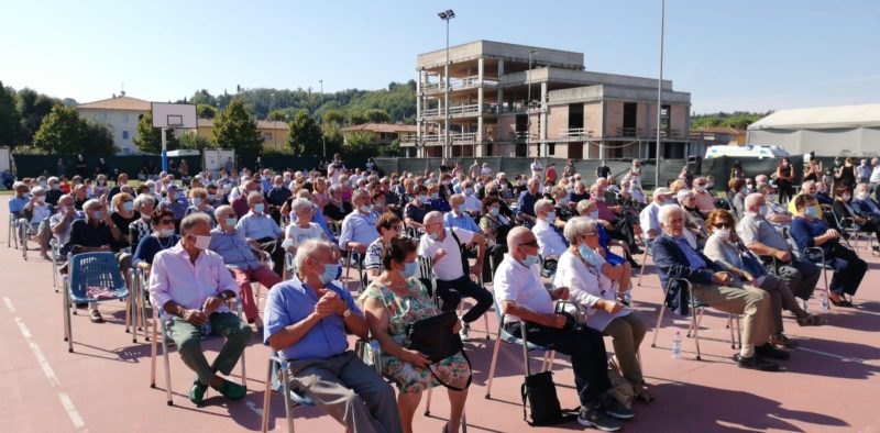 L'emergenza sanitaria solo ha ritardato di qualche mese senza impedire uno degli appuntamenti più attesi dalla cittadinanza di San Miniato: la cerimonia per le coppie che celebrano le nozze d'oro e di diamante. Una grande festa, quest'anno giunta alla settima edizione, che si è svolta all'aperto, in sicurezza, all'interno del campo da basket adiacente alla Casa Culturale di San Miniato Basso, dove 160 coppie hanno potuto celebrare un traguardo importante. 120 di loro hanno festeggiato 50 anni di vita insieme, mentre le altre 40 ben 60 anni insieme. A fare gli onori di casa sono stati il sindaco di San Miniato e il presidente del consiglio comunale che hanno voluto omaggiare tutte le coppie intervenute con una cartella istituzionale dedicata alla figura di Napoleone, oltre ad una pergamena e ad una foto ricordo. Mascherine e distanza di sicurezza non hanno impedito la buona riuscita dell'iniziativa che di solito viene fatta in primavera e al chiuso, lasciando i partecipanti entusiasti per un momento di festa che l'amministrazione comunale ha voluto offrire loro.