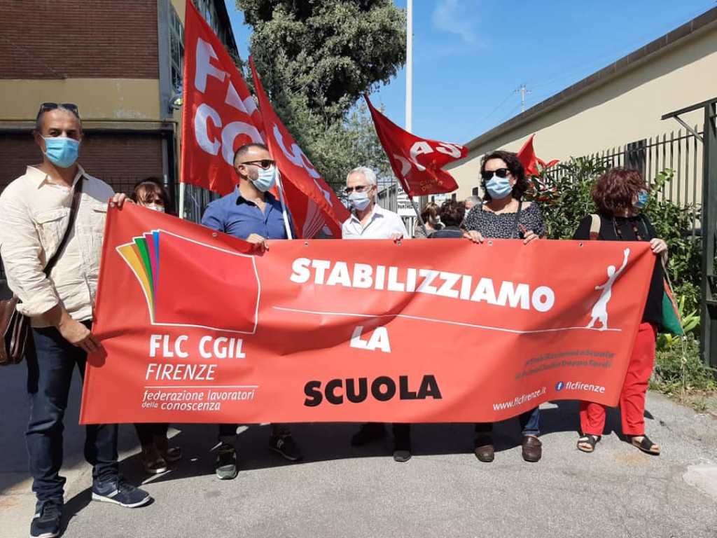 Oggi, 14 settembre, primo giorno di scuola per migliaia di alunni e studenti. Non è così invece per il personale scolastico, i docenti, gli ata rimasti fuori dalle convocazioni che ancora no arrivano. Questa mattina i prof si sono dati appuntamento davanti all'Ufficio scolastico regionale di Firenze.