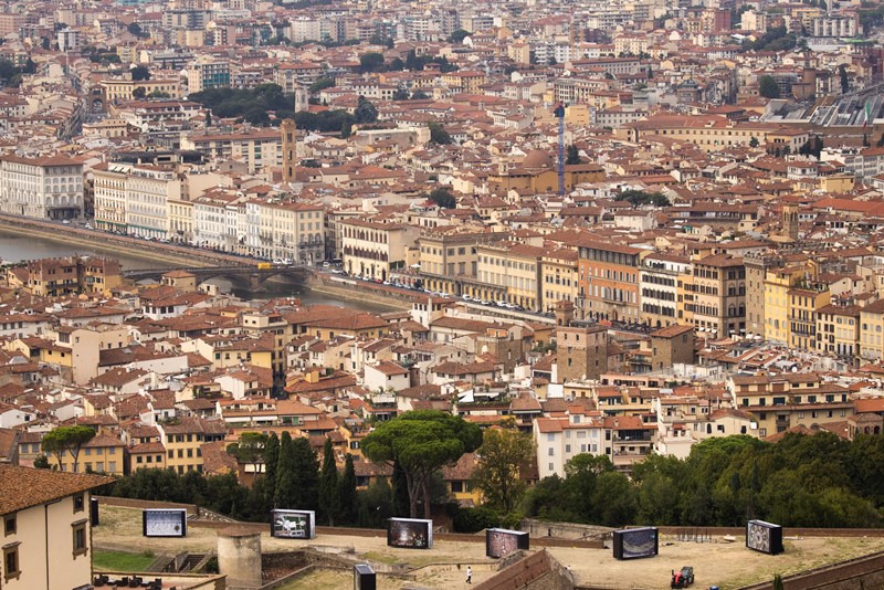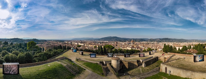Dall’indimenticabile mostra di Henry Moore del 1972, il Forte di Belvedere di Firenze è diventato uno più importanti e belli spazi espositivi a cielo aperto al mondo, ma quest’anno senza un progetto espositivo, causa lockdown. Riapre In questi ultimi giorni d’estate con le foto di Massimo Sestini, vere e proprie installazioni (ognuna è grande cinque metri per tre), che diventano finestre inserite nel paesaggio e sullo skyline di Firenze.