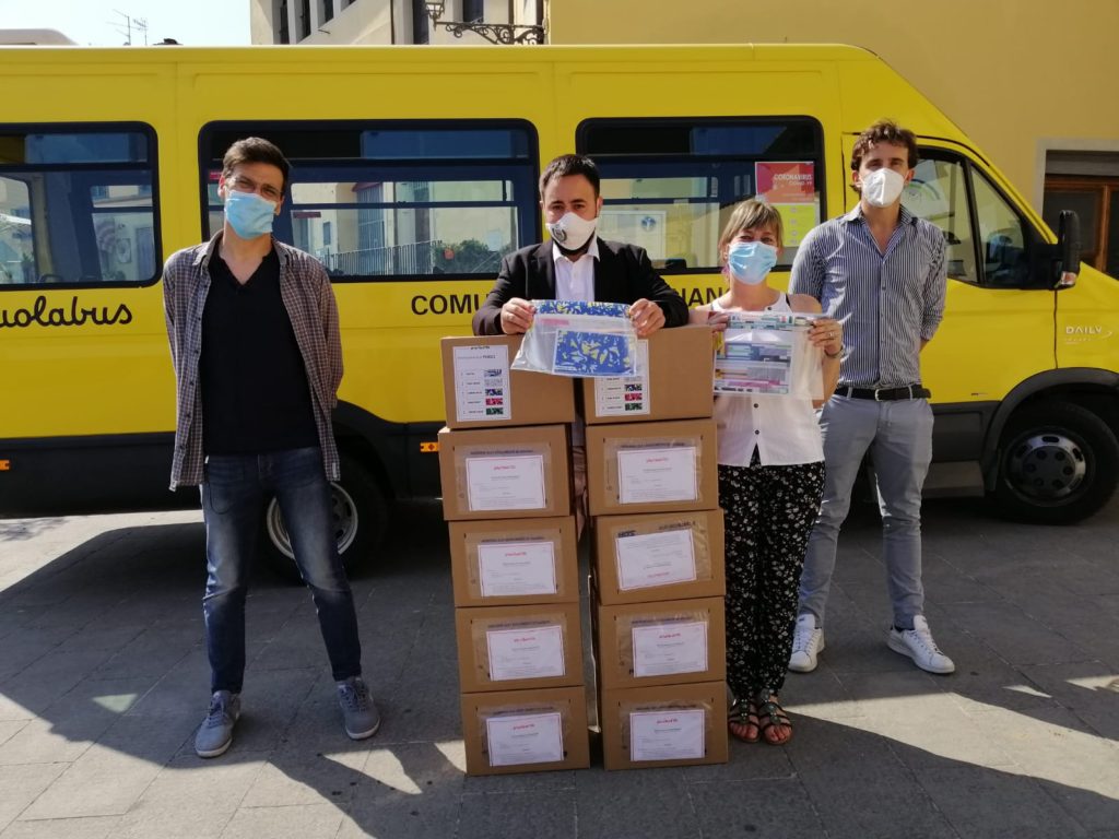 Oggi l’azienda Pluribol ha donato un kit da 10 visiere paraschizzi per ciascuna scuola dell’infanzia, per la scuola dell’infanzia paritaria e per gli asili nido privati presenti nel comune di Carmignano.