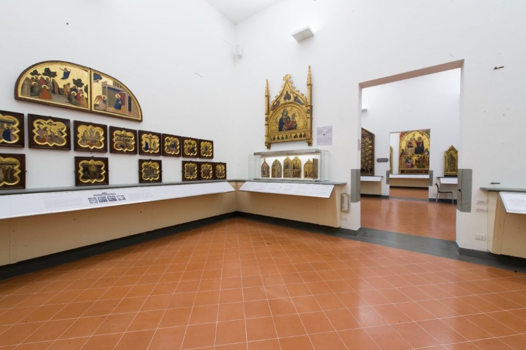 Nell’altra sala sono esposti altrettanti capolavori di cui ricordiamo la splendida Deposizione di Giovanni da Milano, datata 1365, e la monumentale Incoronazione della Vergine di Jacopo di Cione, fratello di Nardo e Andrea Orcagna, nota coma la Pala della Zecca, così denominata per essere stata commissionata dalla zecca fiorentina, intorno al 1373 circa. In questa sezione della Galleria dell’Accademia, si trova anche il trittico della Pentecoste, realizzata da Andrea Orcagna, opera tra le più rappresentative della straordinaria collezione di fondi oro del museo, che è stata soggetto di un importante restauro terminato proprio l’anno scorso.