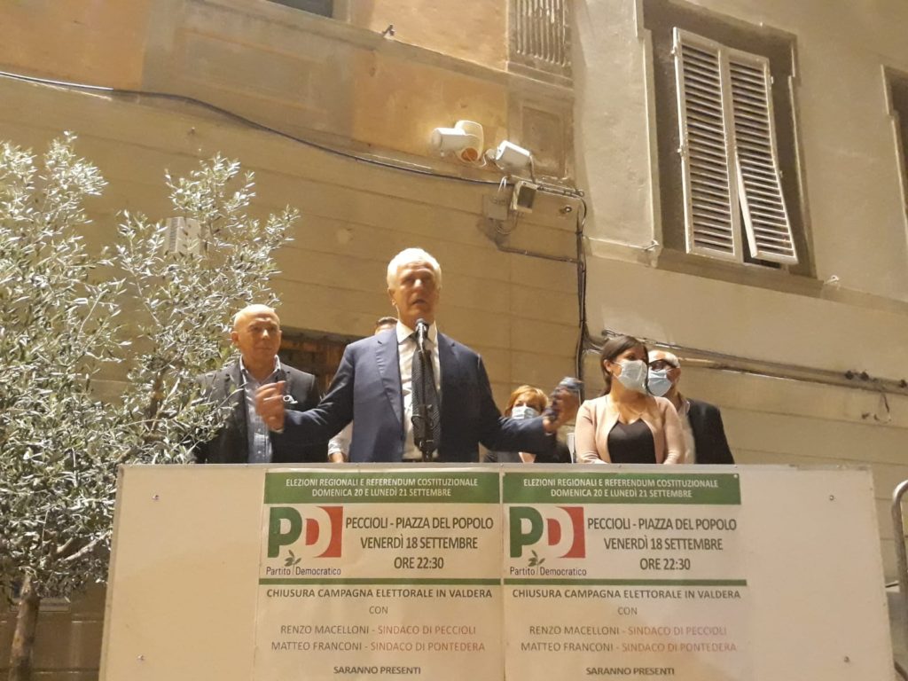 Chiusura di campagna elettorale per Eugenio Giani atteso in tarda serata a Peccioli: "C'è da dare tutto. Ci aspetta un bivio. Abbiamo costruito una Toscana importante in questi anni. Sanità pubblica, ambiente, cultura sono alcuni dei nostri punti focali. Dall'altra parte però troviamo il caos, perché danno risposte fantasiose. Dicono no a recovery fund e Mes, noi invece abbiamo chiarezza di idee. Abbiamo progetti e capacità di realizzarli. Se andiamo a vedere come abbiamo concluso vediamo piazza della Repubblica a Firenze con la Ceccardi, la stessa che aveva tolto Mattarella dal suo ufficio. In piazza Santissima Annunziata eravamo noi con molti sindaci perché la Toscana vogliamo costruirla in Toscana. Nel mio impegno ci sarà sempre tutta la Toscana. La nostra regione dovrà fondarsi sulla solidarietà, sulle associazioni, sul volontariato. Dobbiamo votare per la Toscana e non per chi viene a fare campagna elettorale e basta".